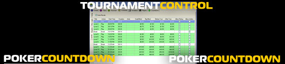 - The standard PokerCountdown display has always shown the current level blinds, limits (if applicable), and time remaining. TournamentControl includes this display and adds new displ